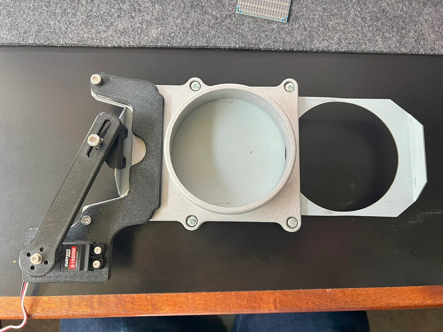 Below is a simple dust gate that can open/close using the servo motor mounted to the gate: